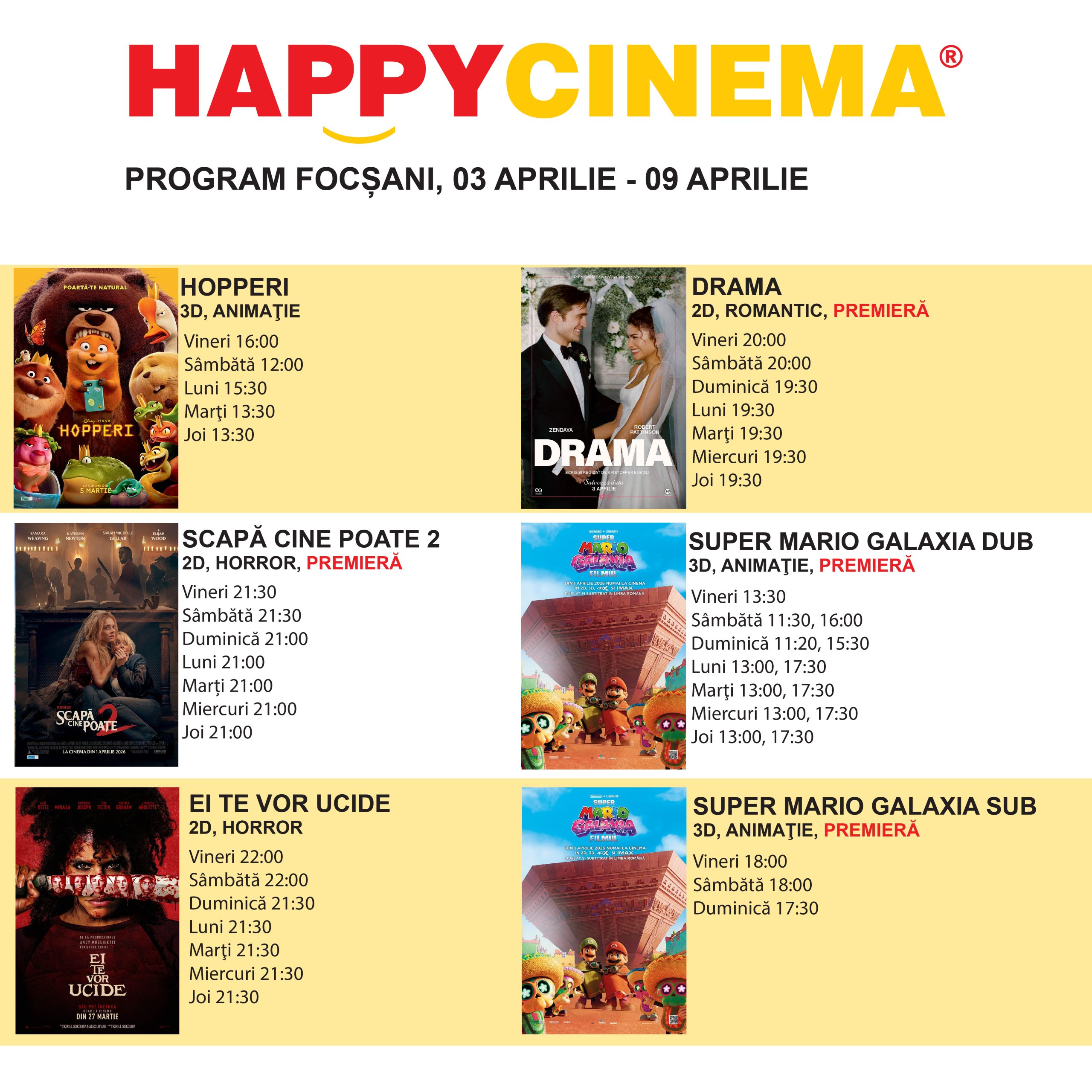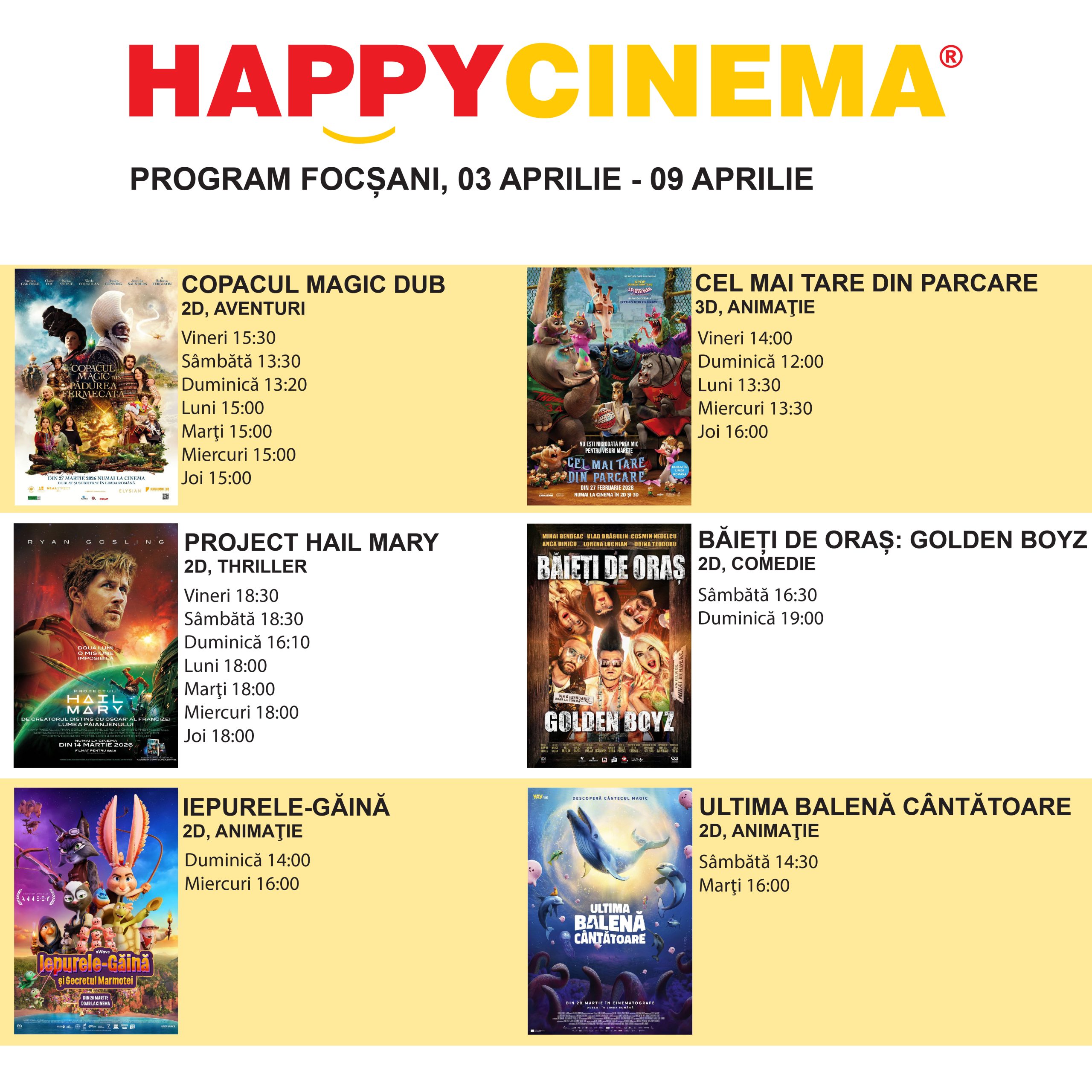 Programul Happy Cinema Focsani 3 APRILIE – 9 APRILIE